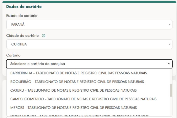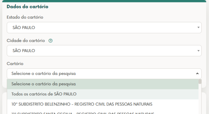 - Você não faz ideia de qual cartório sua certidão foi emitida? Também não tem problema! Temos a opção de pesquisar em todos os cartórios da cidade: